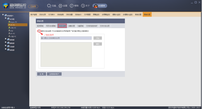 超级眼有设置“QQ白名单”功能,可以将电脑设置成只允许有权限的QQ登录。