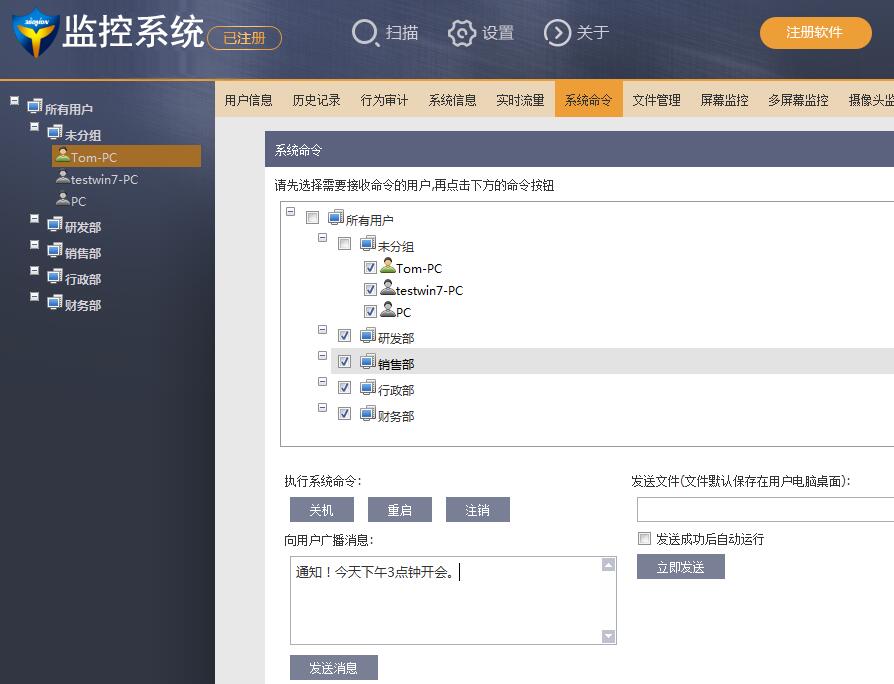 3.批量管理电脑:可以批量关机、重启或注销电脑,方便公司电脑的统一管理。